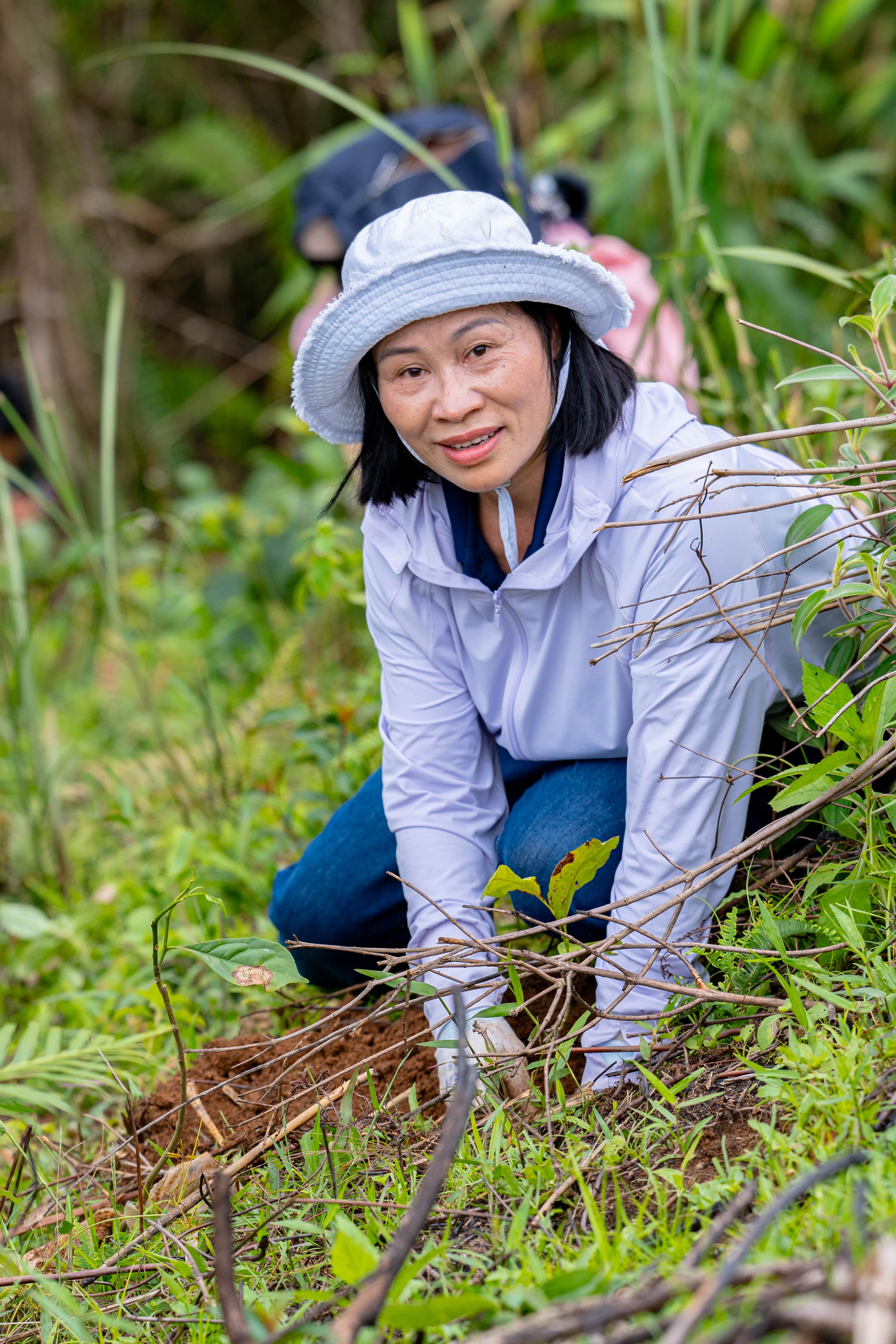 Niềm vui của Cô Quách Thị Hiền – giáo viên Trường Tiểu học Ban Mai (BMS Hà Nội) lần đầu tiên được đặt bầu cây xanh trong vườn quốc gia Tà Đùng – Tây Nguyên