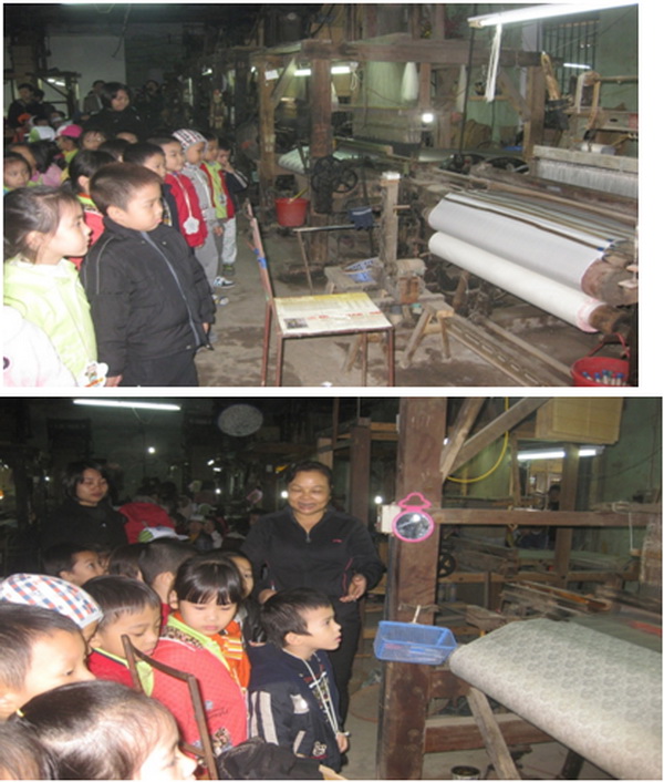 Các bạn được tới tham quan xưởng dệt Văn Mão, một xưởng dệt cách cổng làng không xa. Các bạn rất ngạc nhiên vì tất cả các công đoạn trong xưởng đều được làm bằng máy. Máy quay tơ, máy dệt vải kêu inh ỏi….
