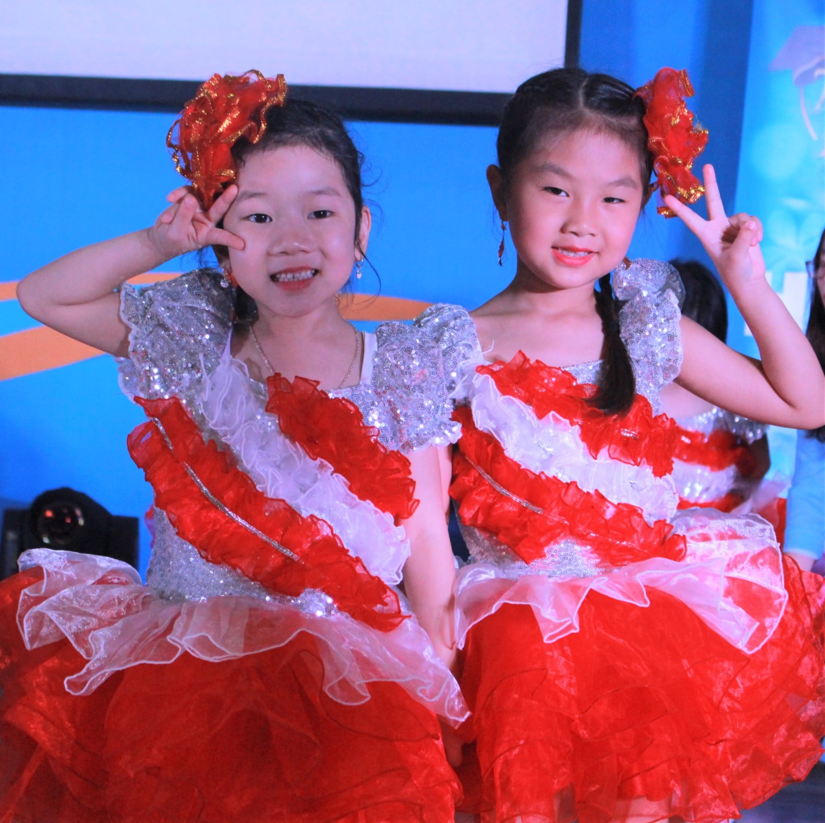 Những bé gái xúng xính trong trang phục vũ công tạo dáng để chụp ảnh. Các bé sẽ đóng góp cho ngày lễ của mình bằng những tiết mục văn nghệ thật đặc sắc.