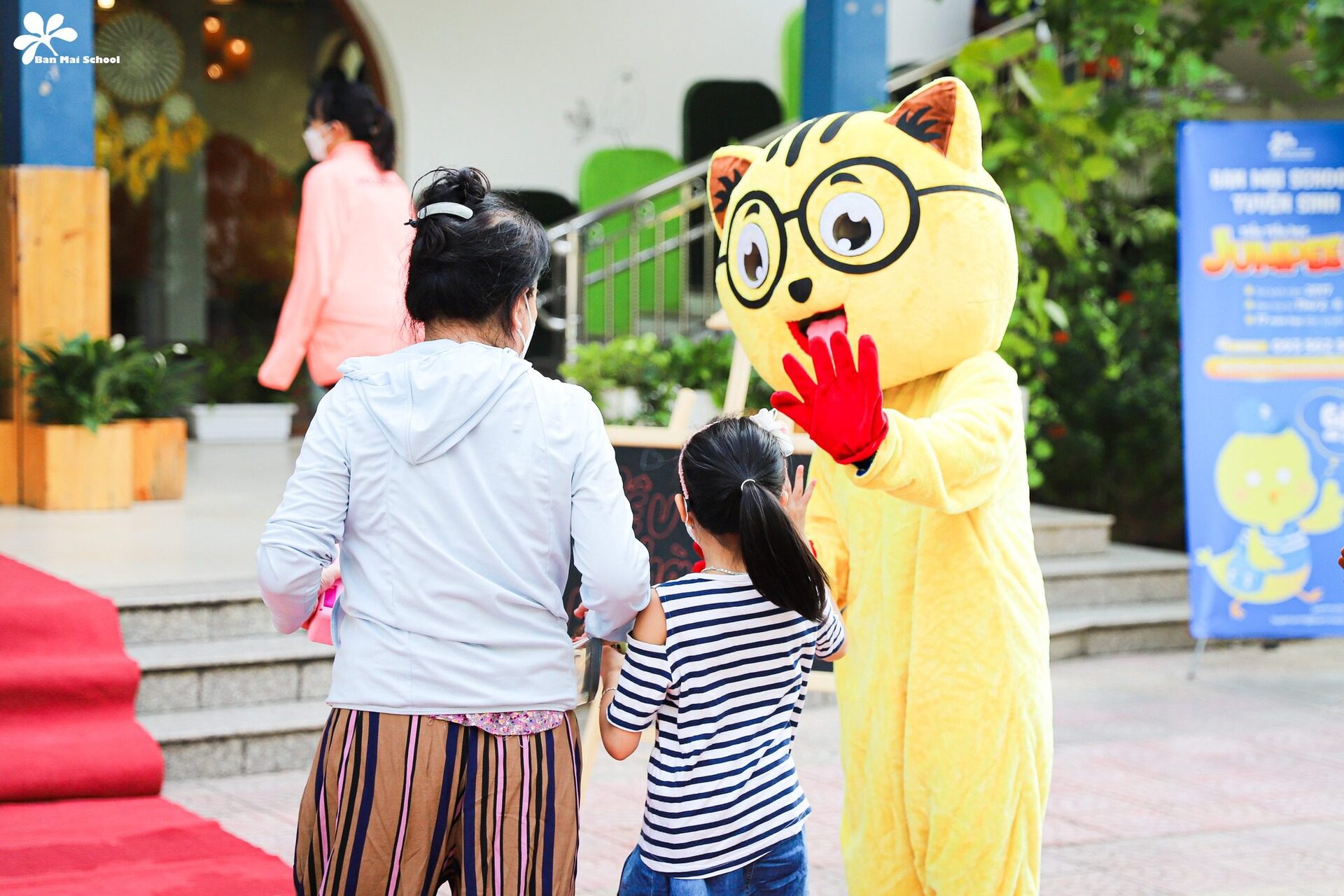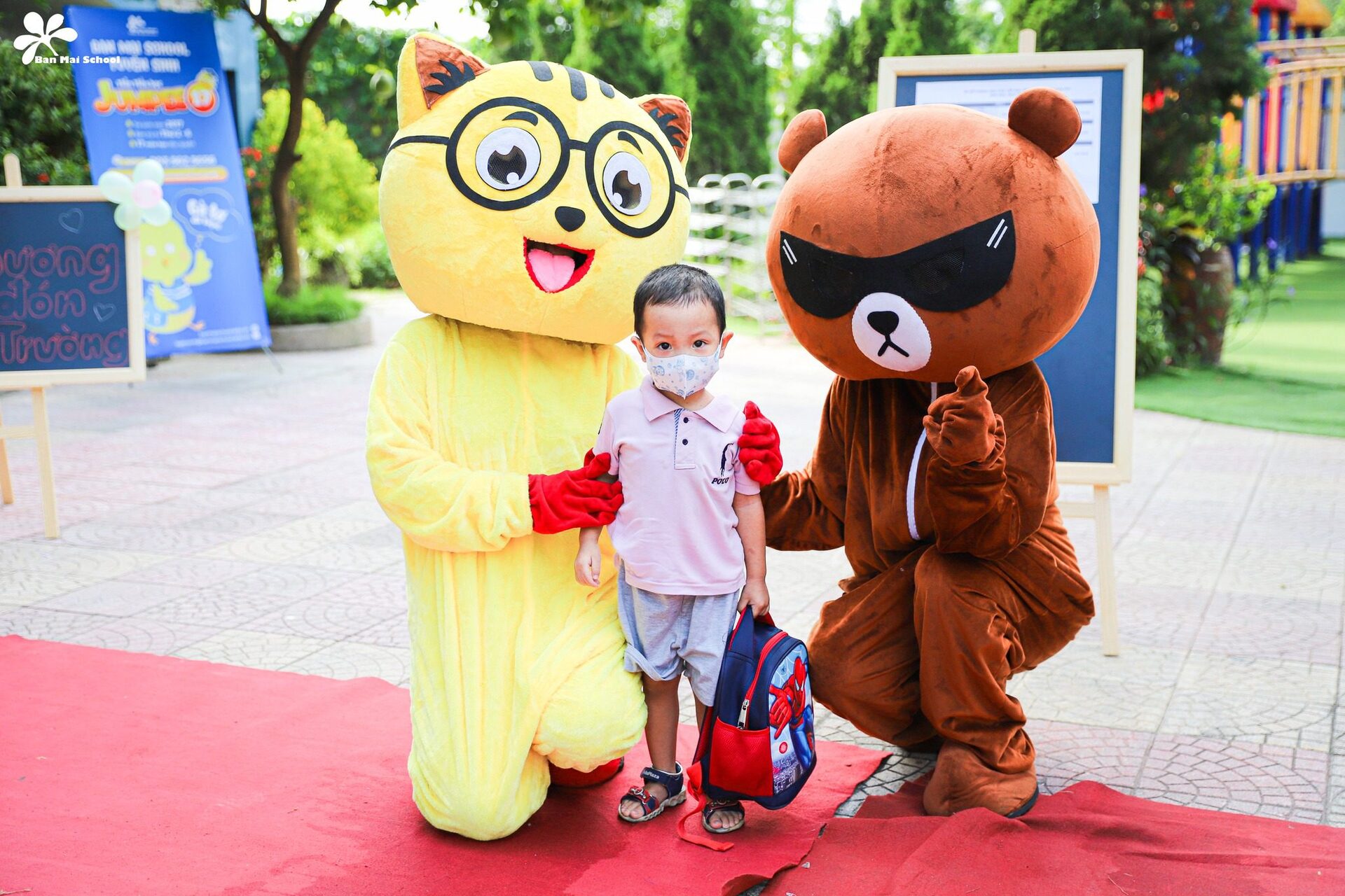 BMSers háo hức khi được thầy cô cùng các nhân vật hoạt hình ngộ nghĩnh chào đón từ cổng trường. Lon ton theo ba mẹ lên lớp, các con càng hạnh phúc hơn nữa trước sự chuẩn bị chu đáo của các cô giáo và những không gian được thay áo mới đẹp lung linh.