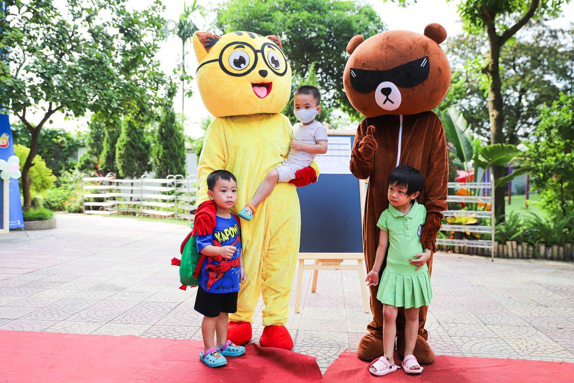 “Aaaa! Chào bạn Gấu nhé!… Mẹ ơi, con muốn chụp ảnh cùng Mèo con!…”