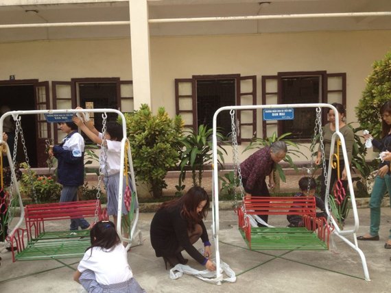 Lần thăm này , nhà trường mang đến cho các em ở Trung tâm một món quà được trích từ quỹ Trung thu yêu thương của nhà trường. Theo nguyện vọng của các em, Trường Mầm non – Tiểu học đã tặng trung tâm 2 chiếc xích đu để các em có thêm đồ chơi ngoài trời sau những lúc học tập vất vả.