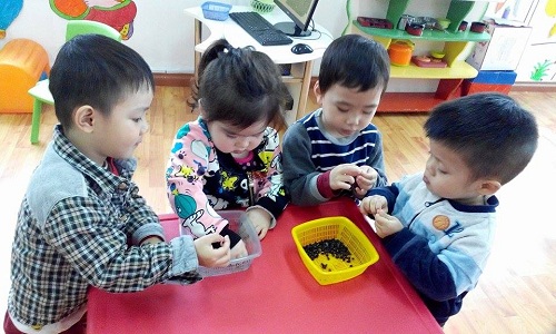 Vâng mỗi ngày đến trường là một sự mới lạ, khác lạ các con không những chỉ được làm quen với môi trường lớp học của mình mà các con con được khám phá thế giới xung quanh mình nữa.