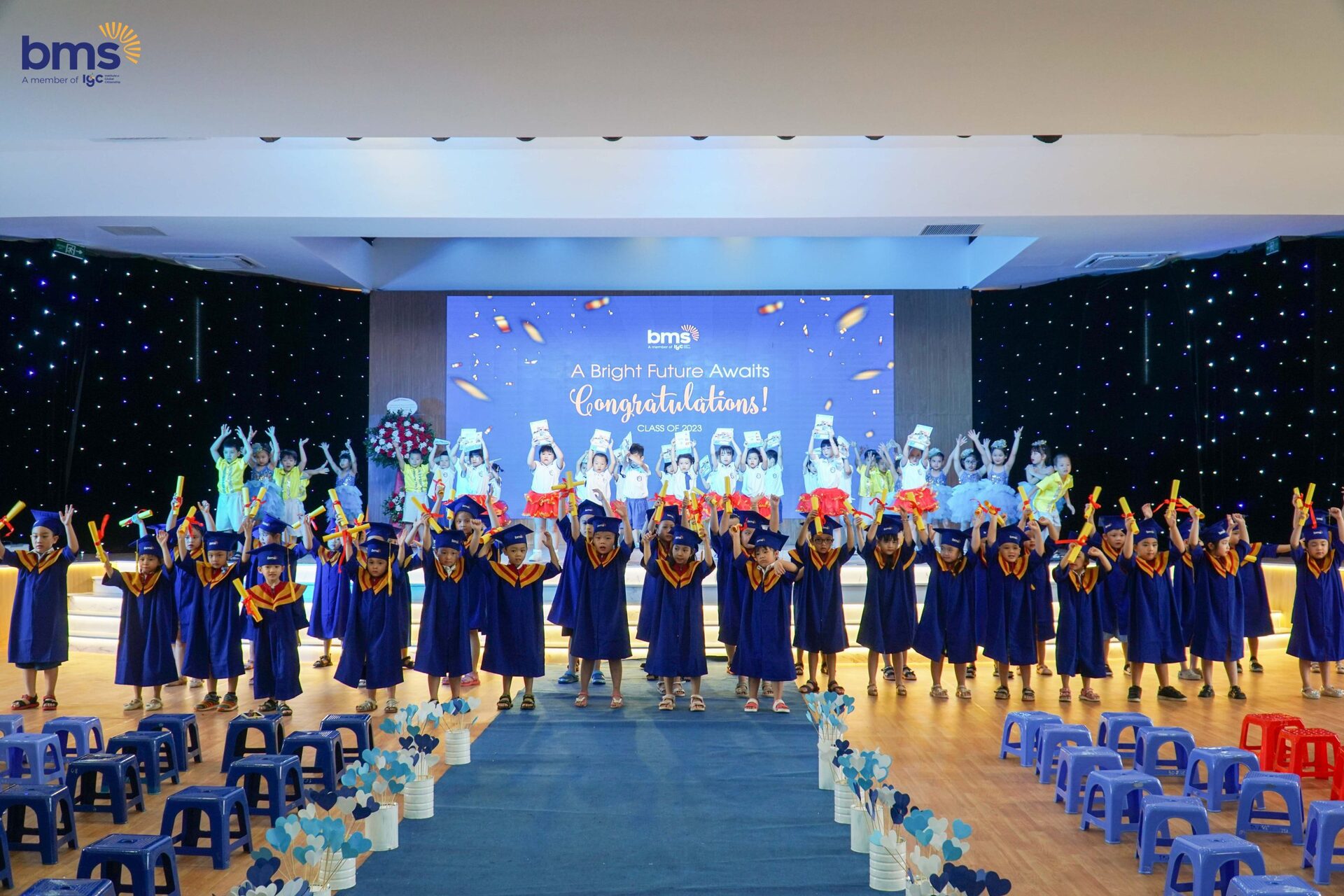 Đối với các bạn nhỏ, chia tay không hẳn là kết thúc, đó chỉ là điểm dừng của một giai đoạn, để một giai đoạn rực rỡ, mới mẻ khác bắt đầu. Và, chủ đề của ngày lễ Tri ân và trưởng thành “A Bright Future Awaits – Một tương lai sáng đang chờ đợi” cũng mang trong mình thông điệp thiêng liêng đó.