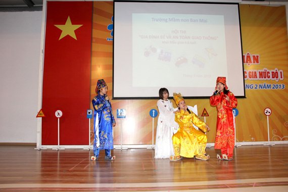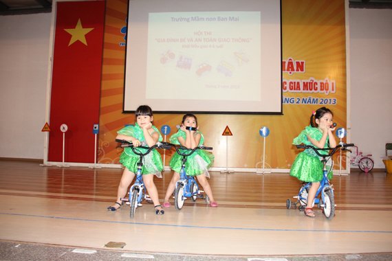 Với mong muốn giúp trẻ ôn luyện một số kiến thức đơn giản về phương tiện và luật lệ giao thông đường bộ, đồng thời tạo sân chơi bổ ích cho cha mẹ và các con học sinh được cùng nhau vui chơi, cùng nhau chia sẻ và thể hiện tài năng, tinh thần đoàn kết trong gia đình. 8h30 phút ngày 29/3/2013, trường Mầm non Ban Mai vui mừng tổ chức hội thi ” Gia đình bé và An toàn giao thông”. 14 đội thi đến từ 14 lớp thuộc hai khối mẫu giáo Nhỡ và mẫu giáo Lớn cùng nhau trải qua 4 phần thi gay cấn để chung tay thể hiện thông điệp “An toàn giao thông không của riêng ai”, “Đằng sau tay lái là gia đình người thân” mà nhà trường muốn gửi gắm. Cuộc thi thu hút sự chú ý của nhiều vị khách quý, cha mẹ phụ huynh cũng như các Cơ quan Báo chí –Đài truyền hình đã đến đưa tin.