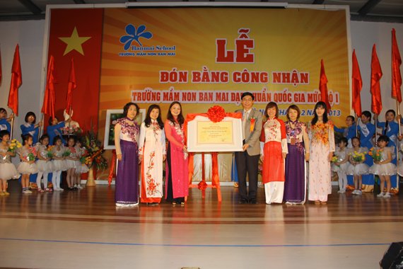 Trường mầm non Ban mai vinh dự đón nhận tấm Bằng cao quý do Ông Nguyễn Văn Trường- Phó Chủ tịch UBND Quận Hà Đông trao tặng với những ghi nhận về thành tích, sự nỗ lực của Nhà trường trong 5 năm qua; sự chỉ đạo hết sức quý báu đối với Nhà trường để giữ vững danh hiệu cao quý đó. Đây sẽ là dấu ấn mang tính lịch sử đối với chặng dường phát triển của trường Mầm non Ban Mai nói riêng và Hệ thống Giáo dục Ban Mai nói chung và với mỗi “người Ban Mai”