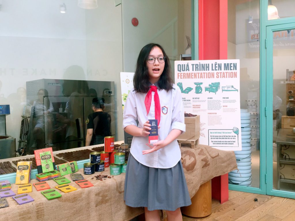 Tham gia Work shop trải nghiệm, các bạn học sinh Ban mai cũng được truyền cảm hứng bởi câu chuyện về Chocolate Marou – một hành trình đầy đam mê và khát vọng của hai sáng lập viên (Mr. Samuel Maruta và Mr. Vincent Mourou). Thêm một lần tự hào và được chiêm ngưỡng hạt cacao được thu mua tại nhiều trang trại của người Việt Nam trên các vùng như Đồng Nai, Bến Tre, Bà Rịa và Tiền giang đã được chế ra loại Chocolate Việt nổi tiếng thế giới .