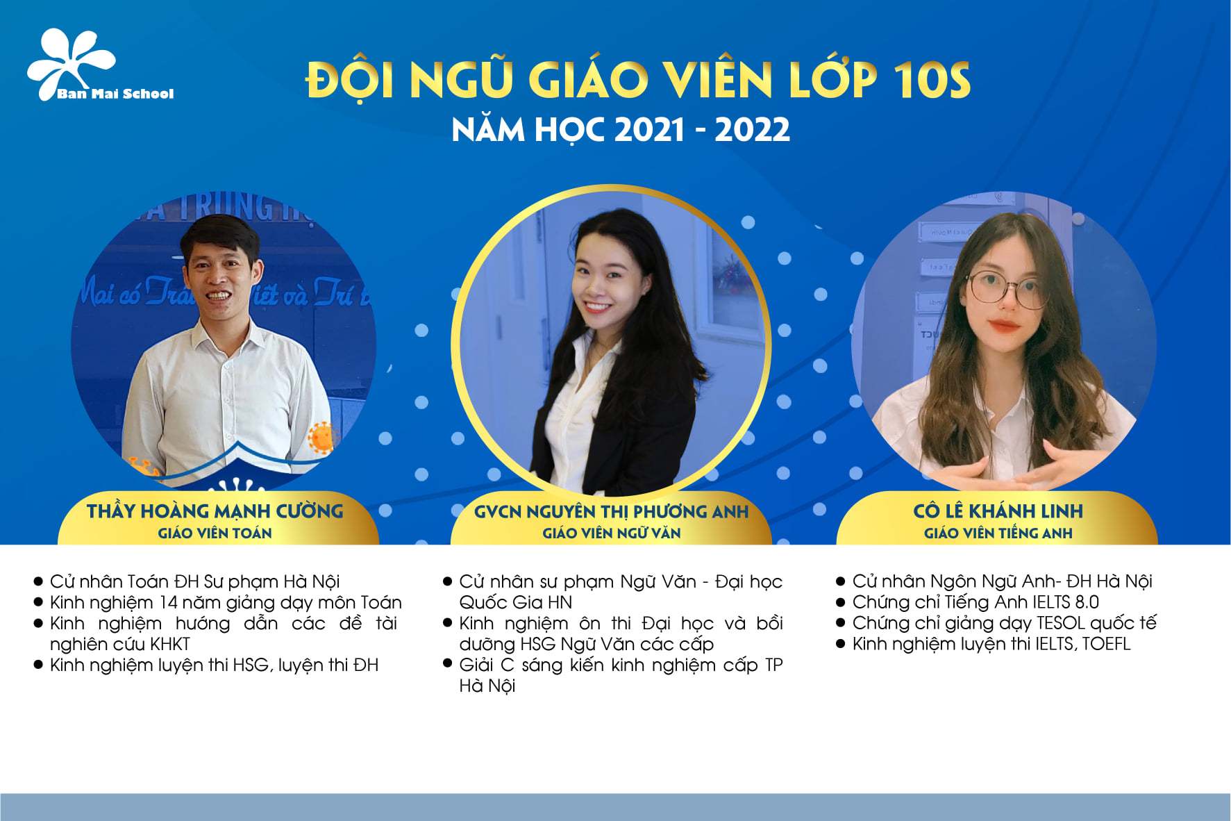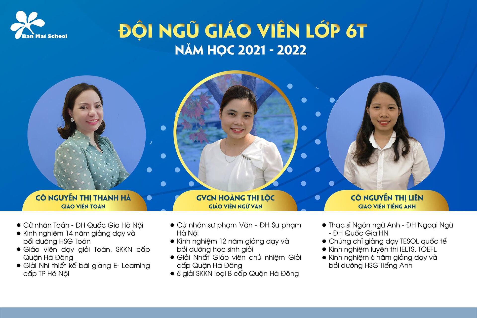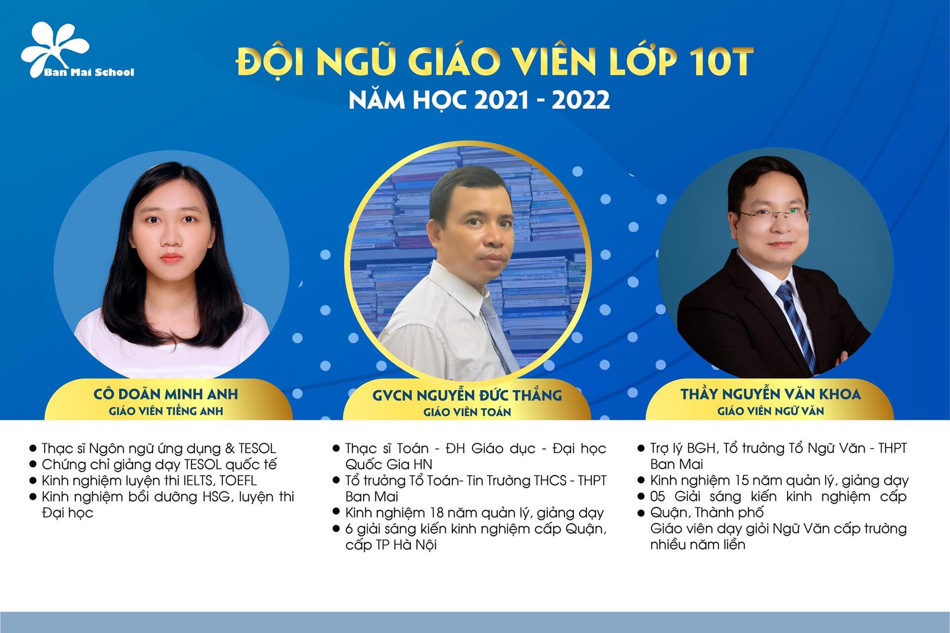 ĐỘI NGŨ GIÁO VIÊN KHỐI 6 VÀ KHỐI 10 TRƯỜNG THCS&THPT BAN MAI NĂM HỌC 2021-2022
