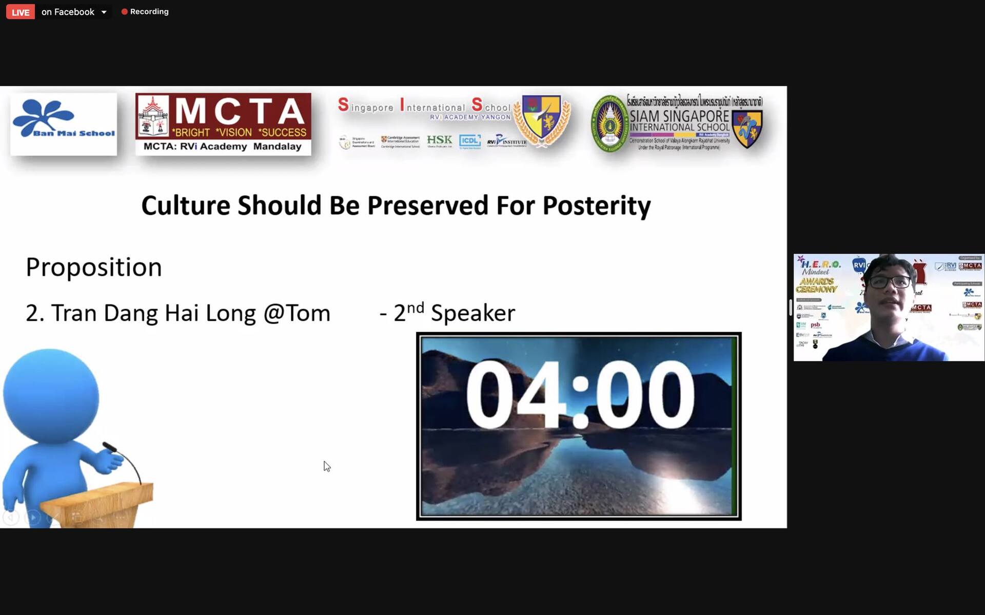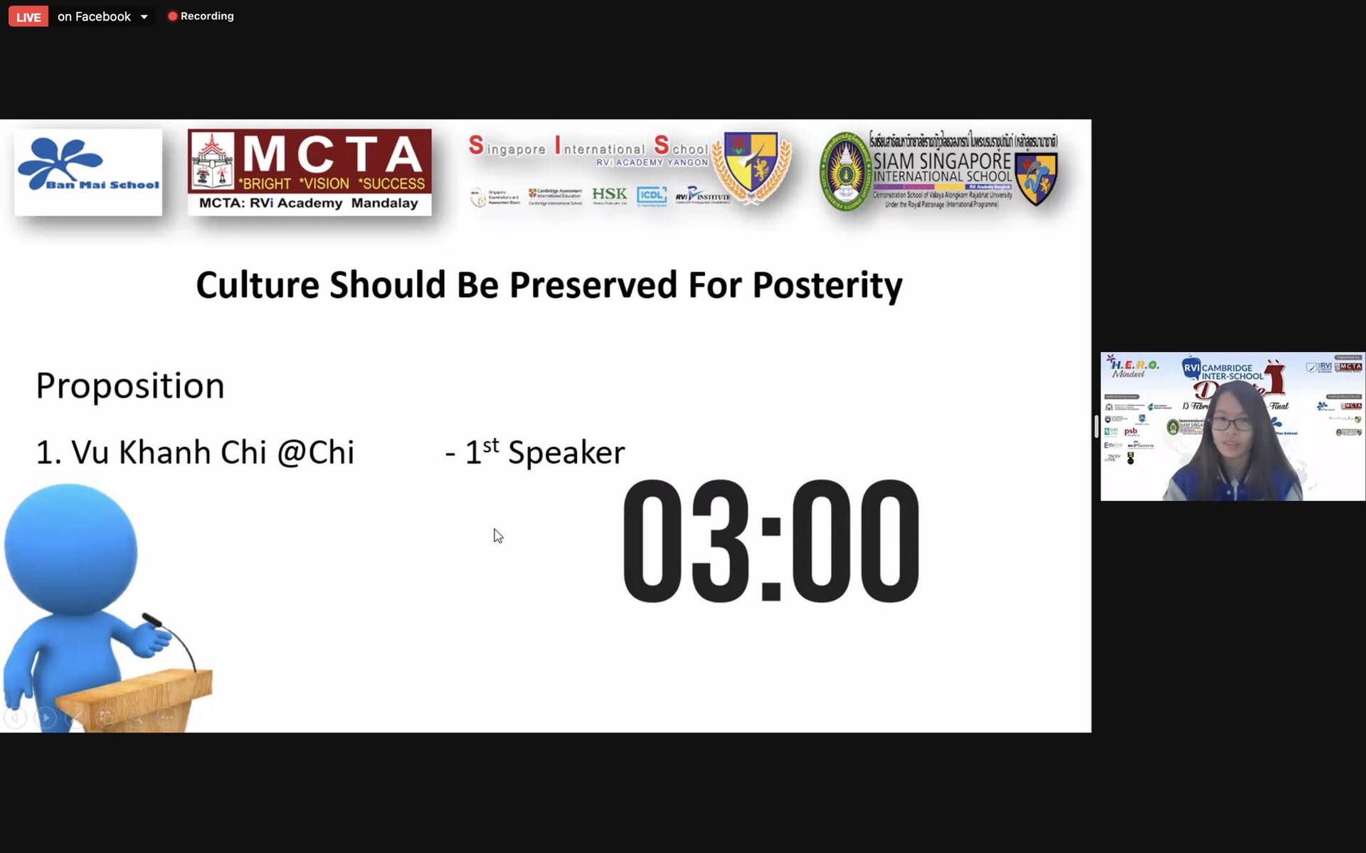 Đội Ban Mai bốc thăm vào phần đồng ý rằng văn hoá nên được bảo tồn cho đến hậu thế. Các bạn đã đưa ra những ý kiến sắc bén, đa chiều và chạm đến cảm xúc của các vị giám khảo, đặc biệt các vị giám khảo cảm thấy rất thú vị khi các bạn học sinh Ban Mai thể hiện sự tự hào và chiều sâu nhận thức về những nét văn hoá độc đáo, lâu đời của Việt Nam và thế giới.