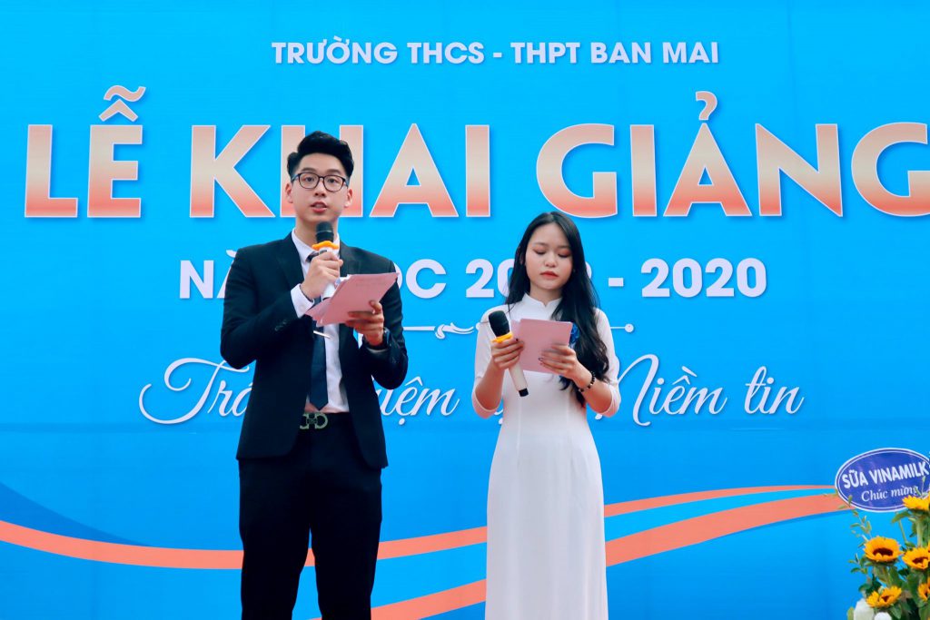 “…Năm học mới 2019-2020 của Trường THCS – THPT Ban Mai với chủ đề “ Trách nhiệm tạo Niềm tin” đã tạo cho chúng con nhiều động lực để phấn đấu trong học tập, tu dưỡng đạo đức, trở thành những học sinh có trách nhiệm với bản thân, gia đình, cộng đồng. Chúng con được tham gia vào các vai trò lãnh đạo như: lãnh đạo truyền thông, lãnh đạo nghệ thuật, lãnh đạo dẫn chương trình…để góp phần làm nên một Lễ khai giảng do chính công sức của chúng con chuẩn bị và triển khai.…” (Nguyễn Vũ Thục Anh – 8A3 Trường THCS Ban Mai).