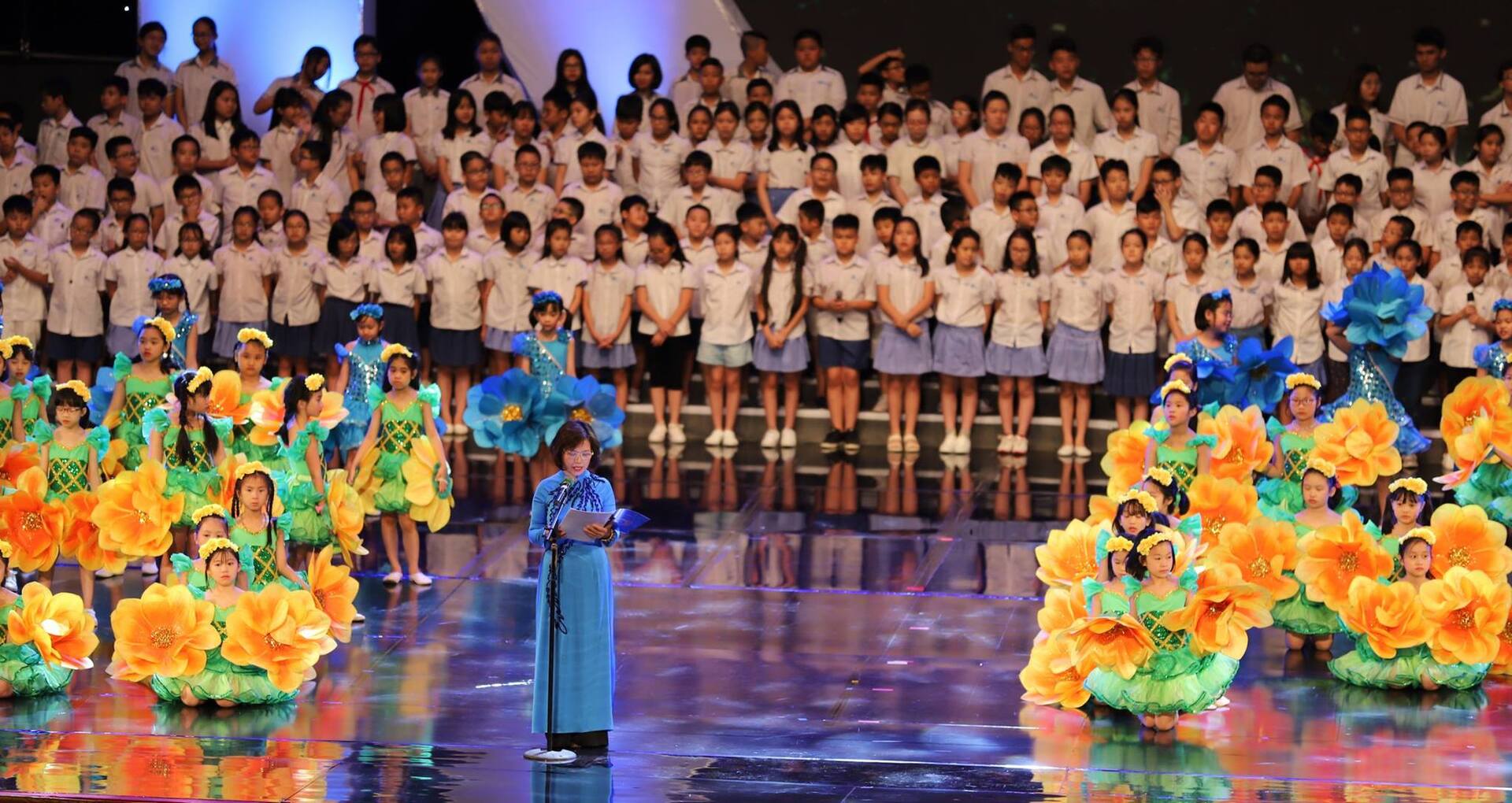 Cùng nhìn lại một số hình ảnh đáng ấn tượng với sự tham gia biể diễn của gần 2000 học sinh Ban Mai tại sân khấu Trung tâm Hội nghị Quốc Gia: