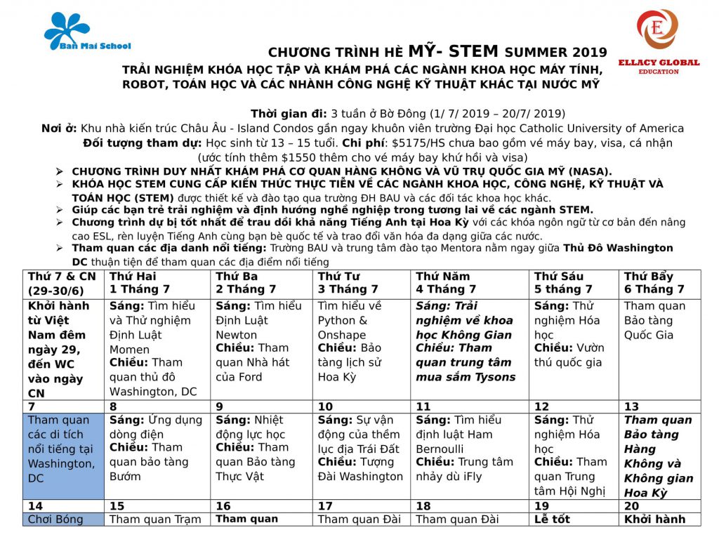 ✔️ USA: STEM & Language; Trải nghiệm TT vũ trụ NASA – (chi tiết chương trình TẠI ĐÂY)