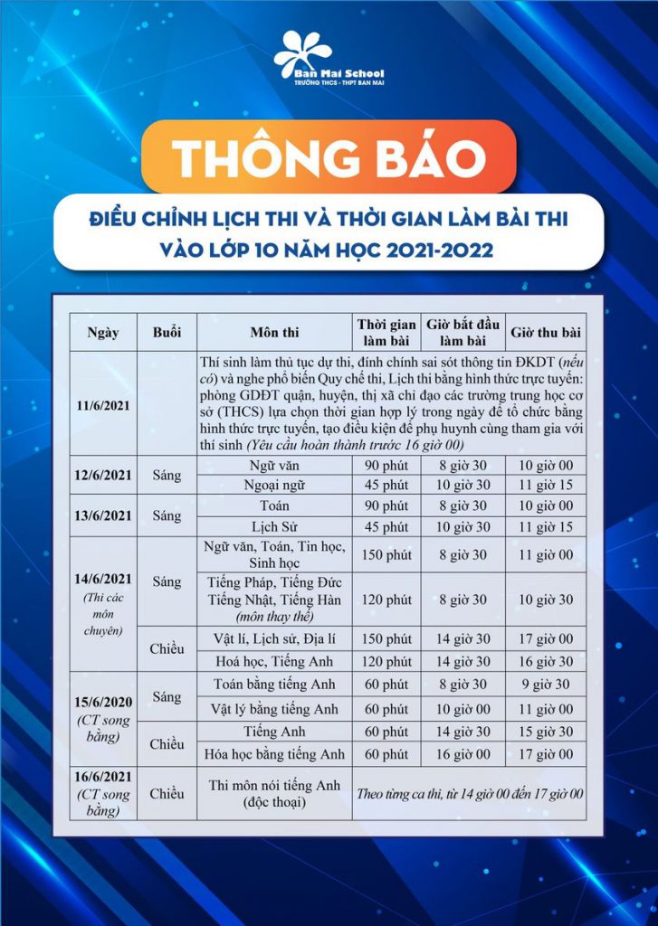 THÔNG BÁO MỚI NHẤT VỀ KỲ THI TUYỂN SINH VÀO LỚP 10 NĂM HỌC 2021 – 2022