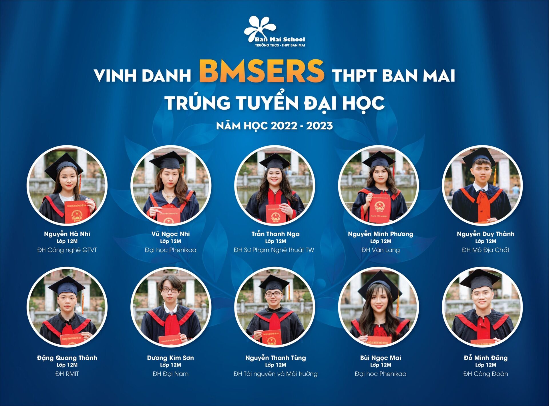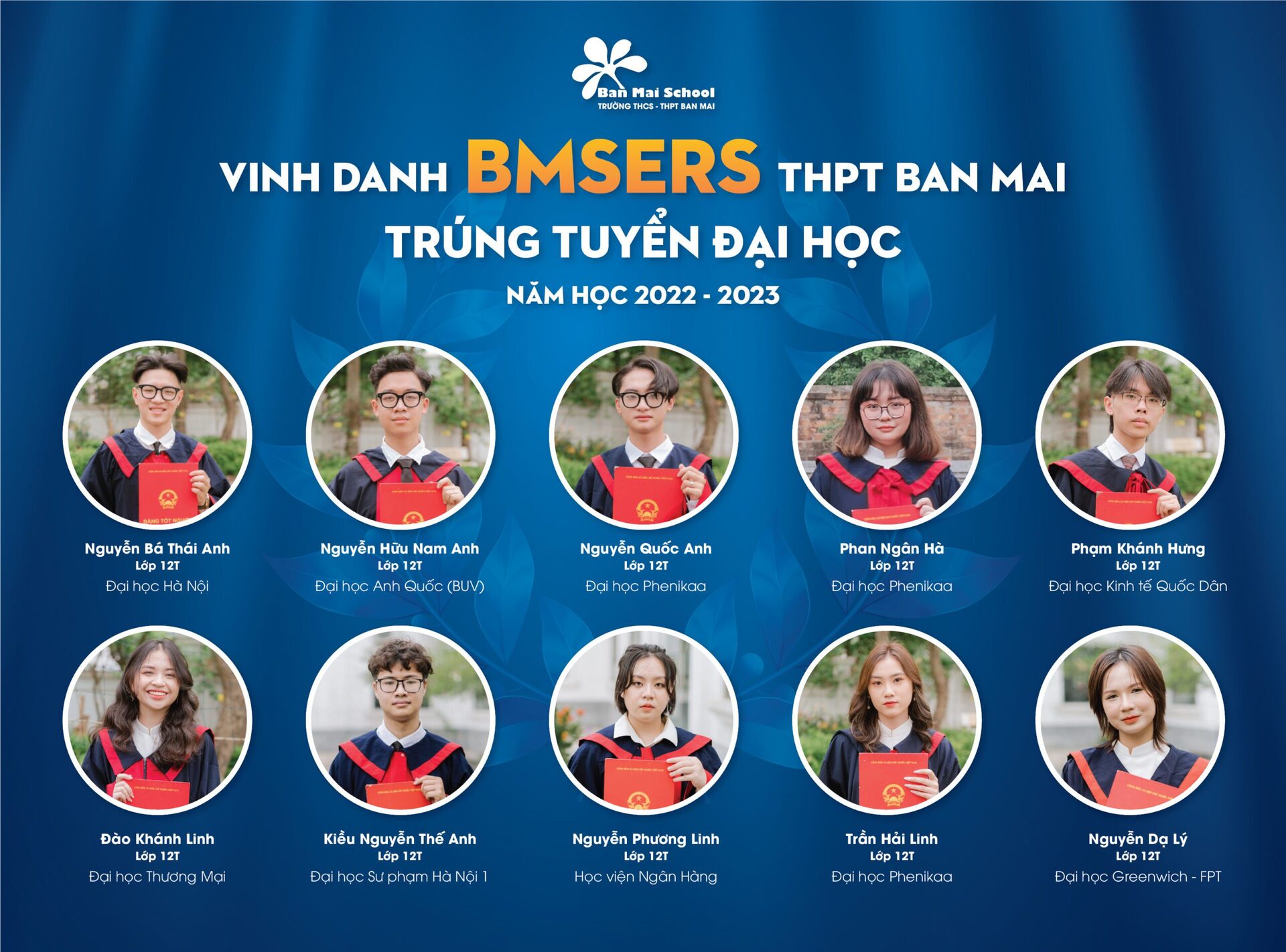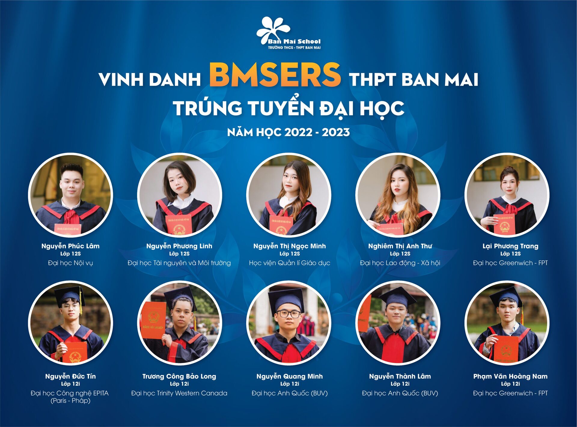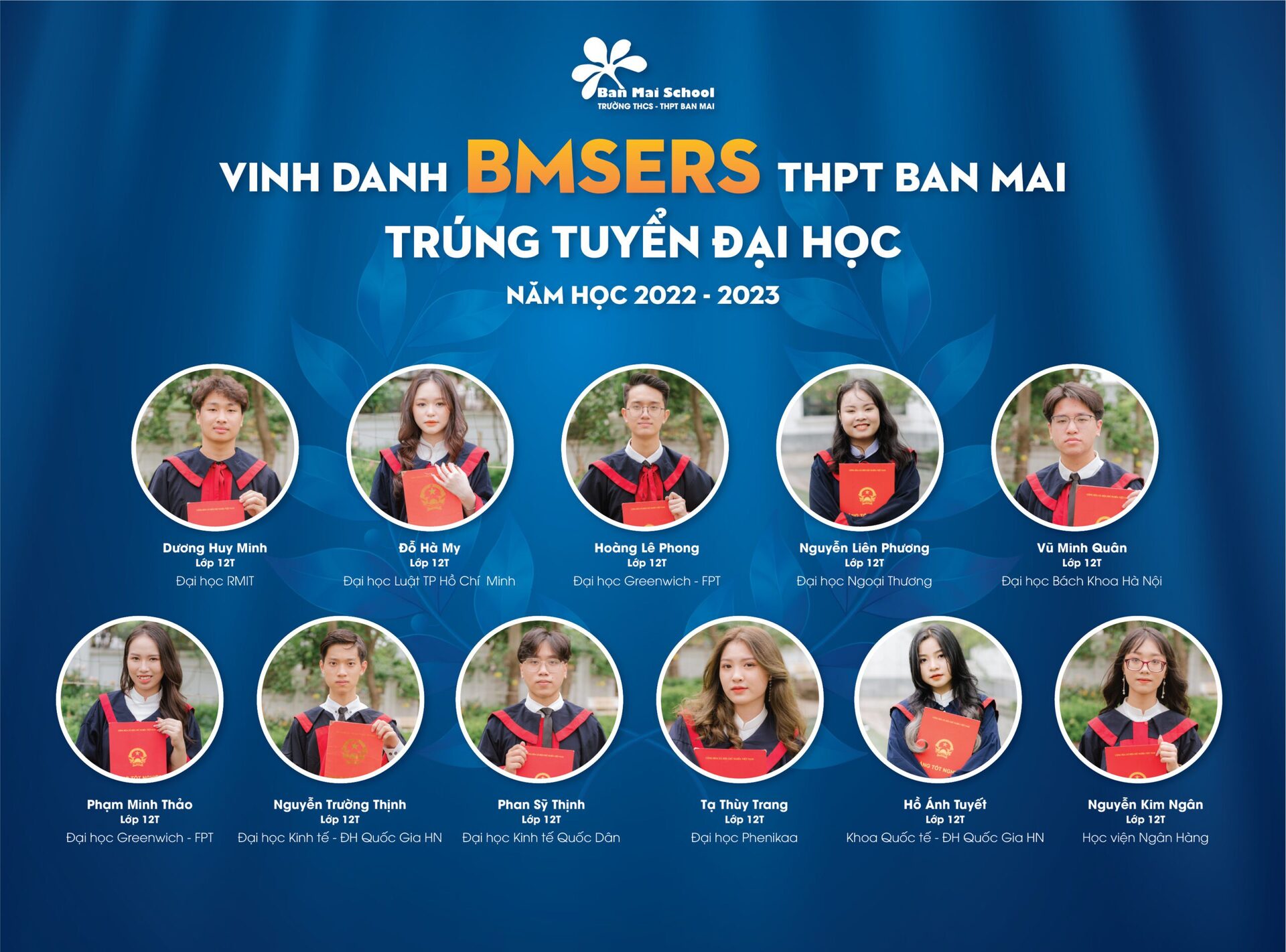 Thành tích ấn tượng mà các BMSers đạt được trong kỳ thi vào Đại học là kết quả của sự nỗ lực không ngừng nghỉ đèn sách, là sự quyết tâm đồng thời là cách thể hiện khả năng, tri thức bản thân cùng với đó là sự đồng hành của Cha Mẹ, Thầy Cô và Nhà trường.