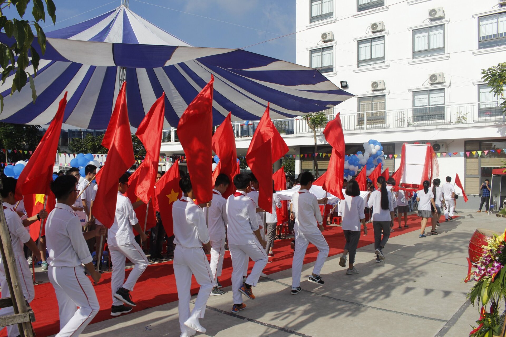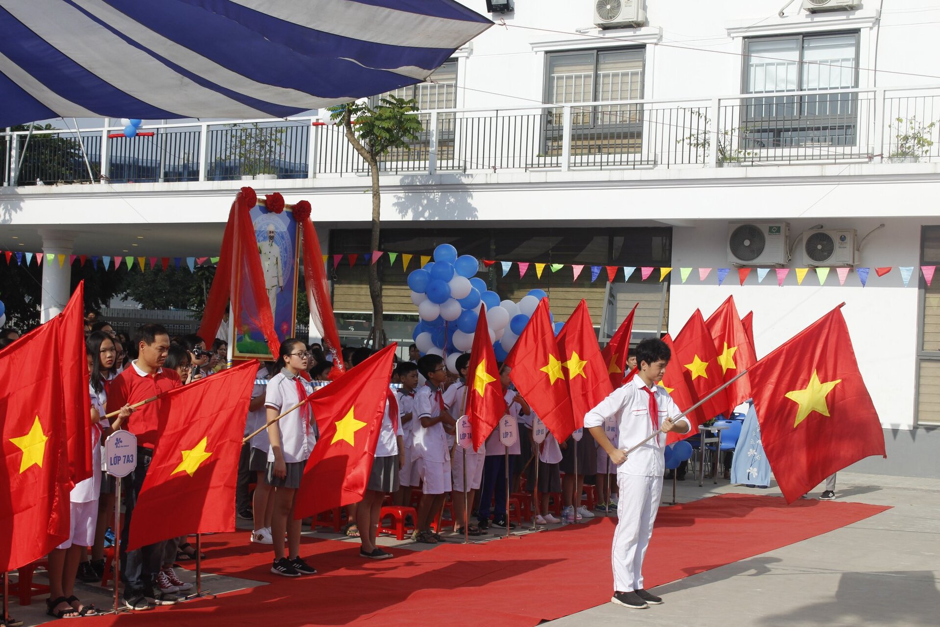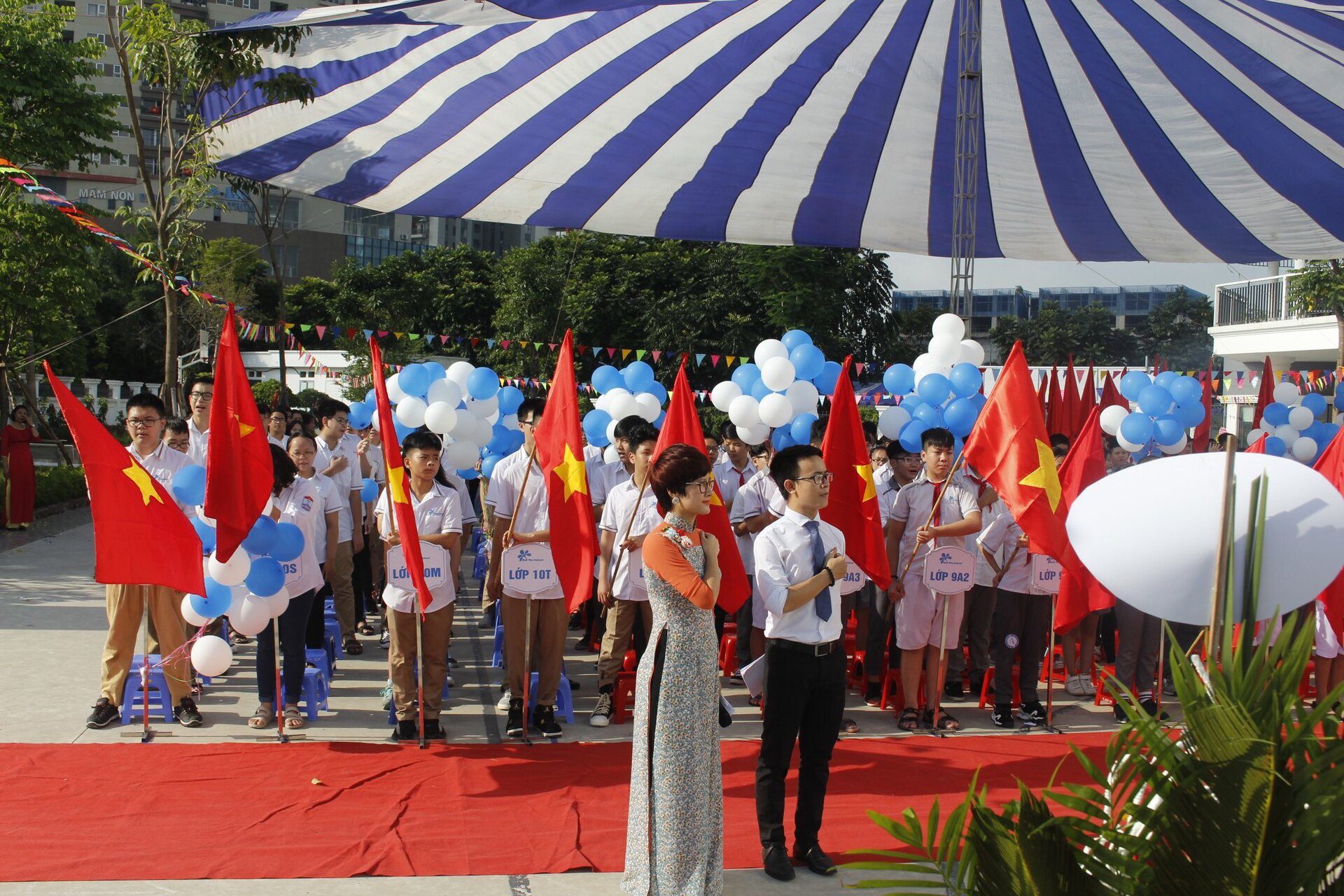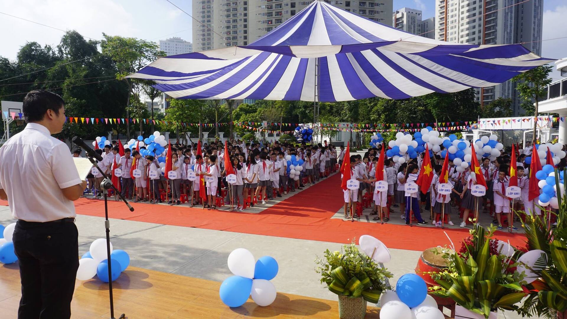 Thầy Nguyễn Khánh Chung – Hiệu trưởng Trường THCS&THPT Ban Mai đánh trống khai trường – tuyên bố Khai giảng năm học mới 2018 – 2019 với chủ đề: “Tôn trọng để Hạnh Phúc”