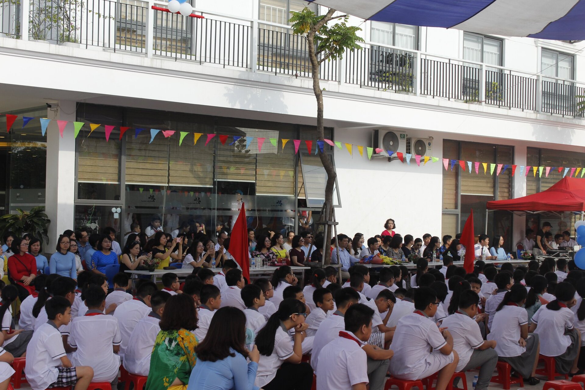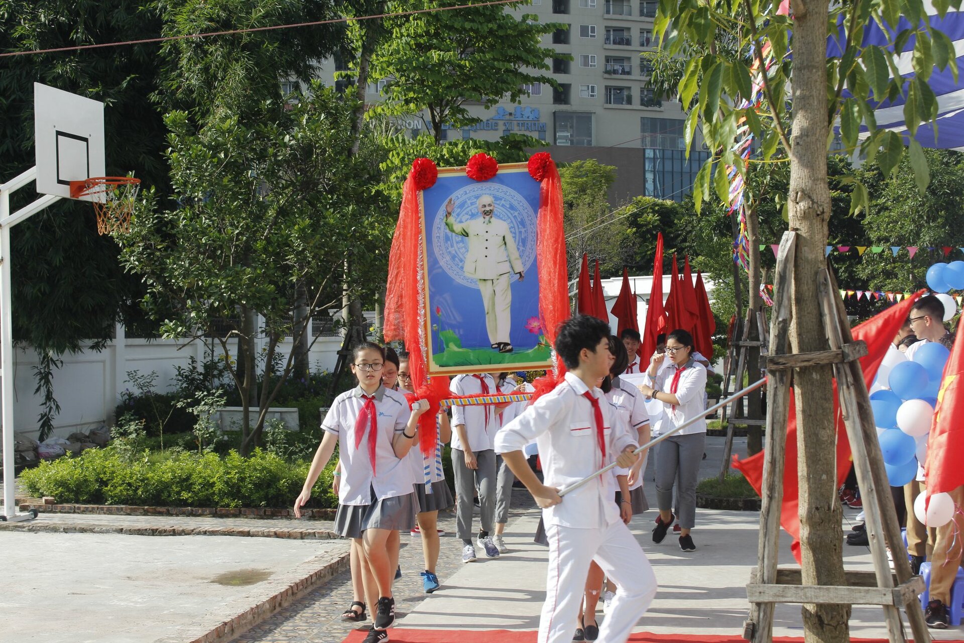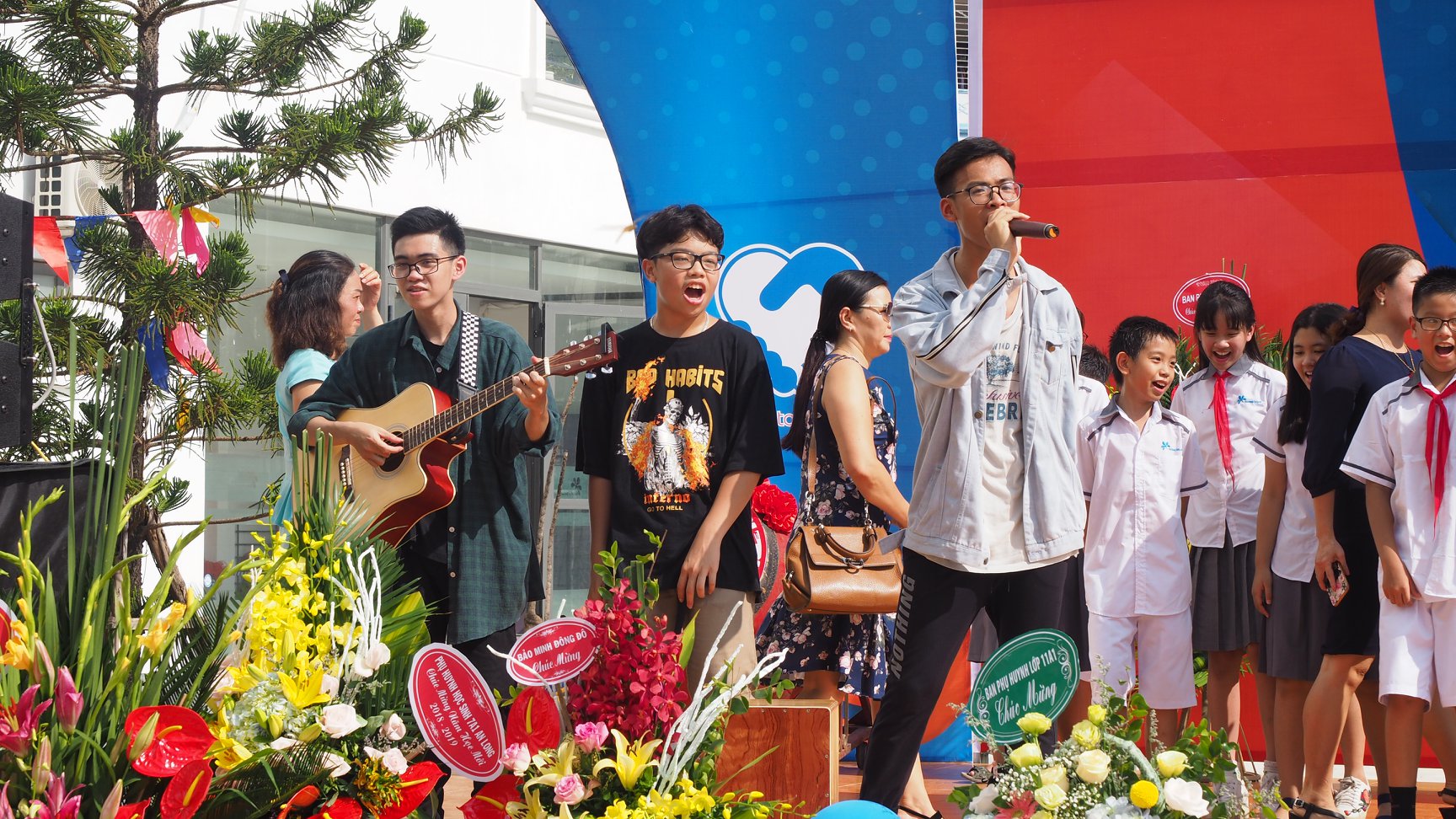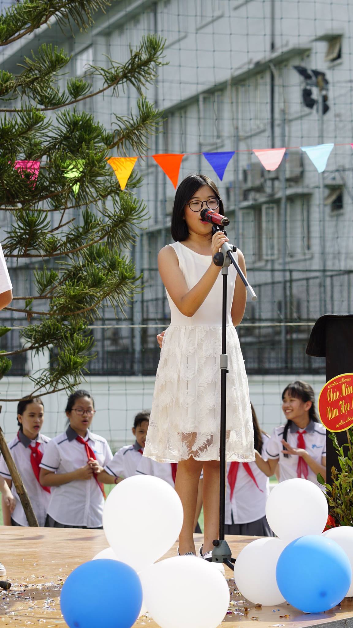 Học sinh Ban Mai tự hào hát vang bài ca truyền thống của trường Ban Mai: “Ban Mai trường em” và “Nụ cười tỏa sáng Ban Mai”
