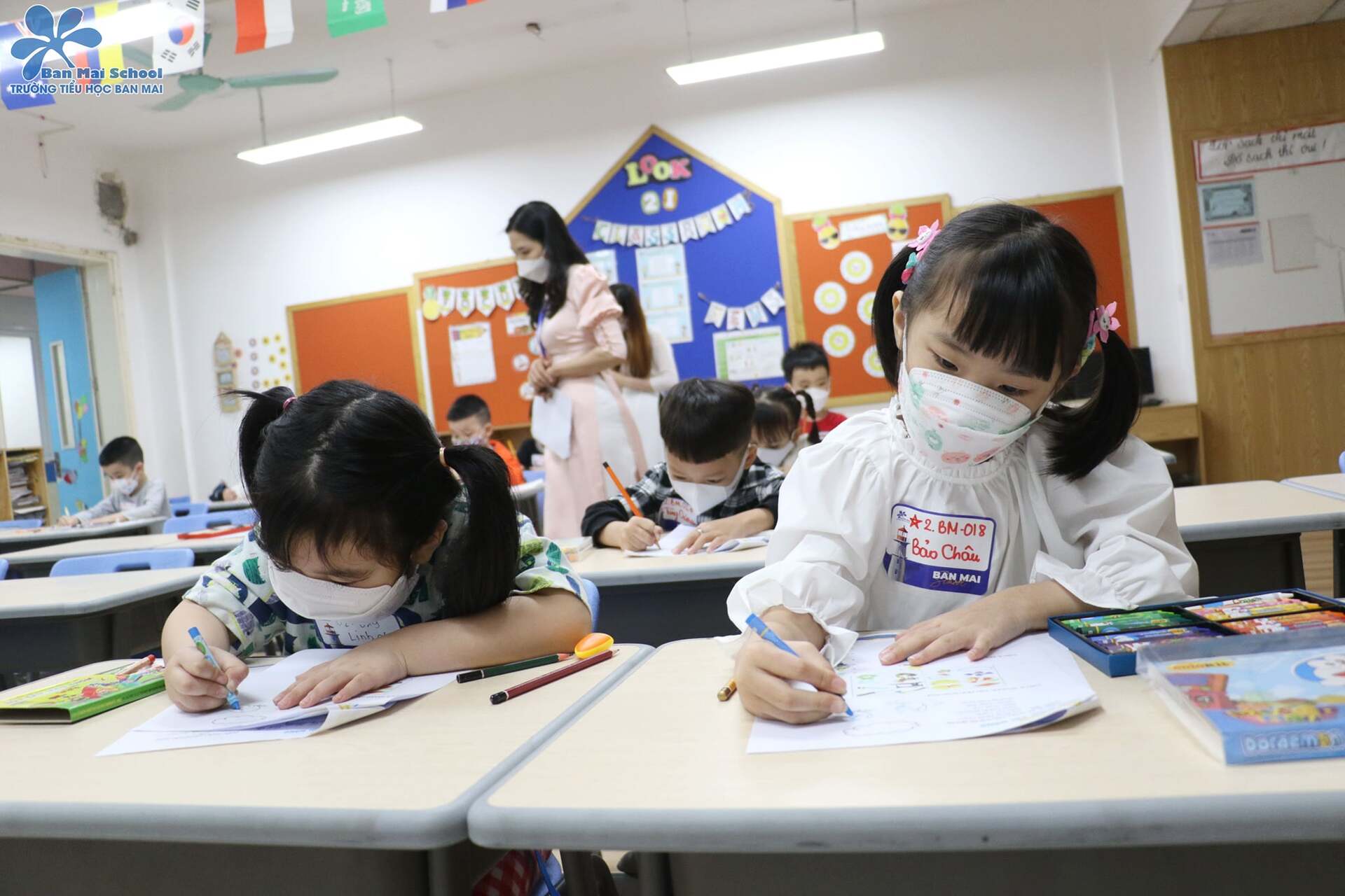 Sau những khoảnh khắc chụp ảnh check in – lưu giữ kỷ niệm đầu đời ý nghĩa bên người thân, các chú khỉ con sinh năm 2016 theo chân thầy cô về 6 phòng thi, tự tin và thỏa sức thể hiện năng lực cùng các môn: Toán, Tiếng Việt, Tiếng Anh.