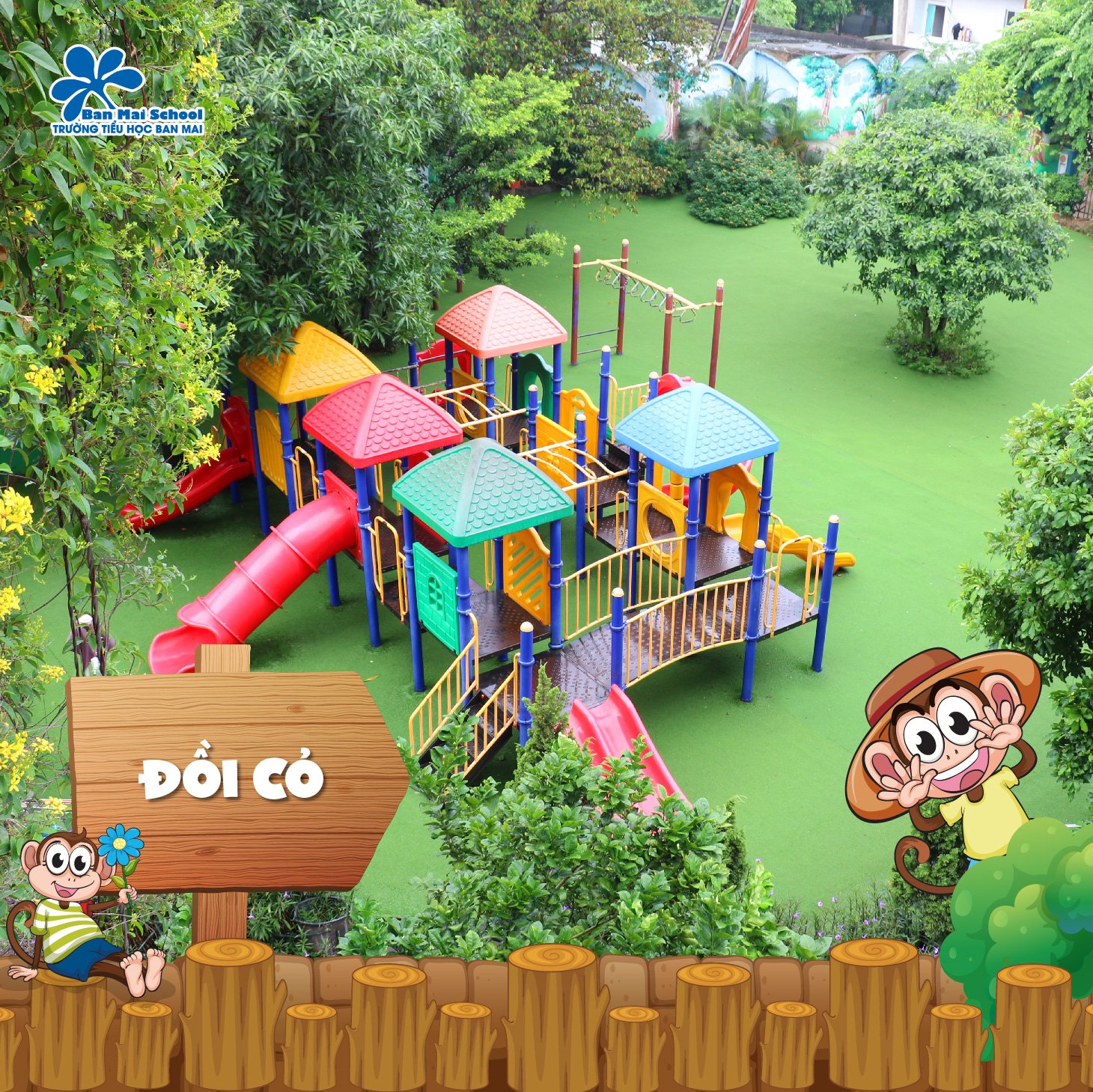 Đồi cỏ nằm ngay góc phải của lối vào cổng số 1. Đây là nơi vui chơi của các học sinh Mầm non – Tiểu học Ban Mai hàng ngày.