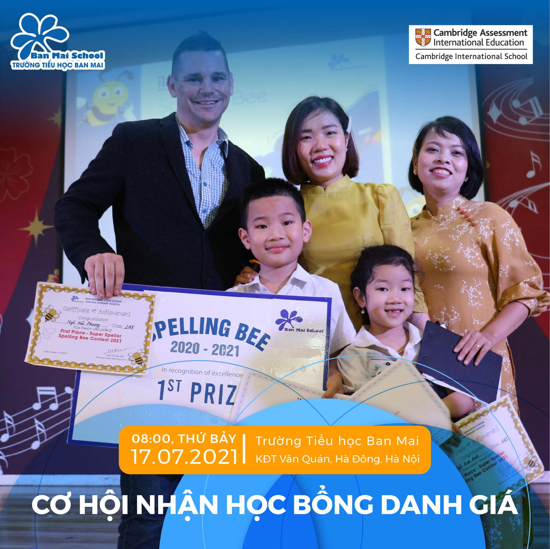 Nhằm khai phá tiềm năng và vinh danh Tài năng nhí, Trường Tiểu học Ban Mai tổ chức kỳ thi dành HỌC BỔNG TRÍ TUỆ VIỆT dành riêng cho học sinh sinh năm 2015, với tổng giá trị học bổng lên đến 230.000.000đ. Học bổng Trí tuệ Việt mang sứ mệnh tìm kiếm những Tài năng ưu tú chuẩn bị vào Lớp 1 năm học 2021 – 2022.
