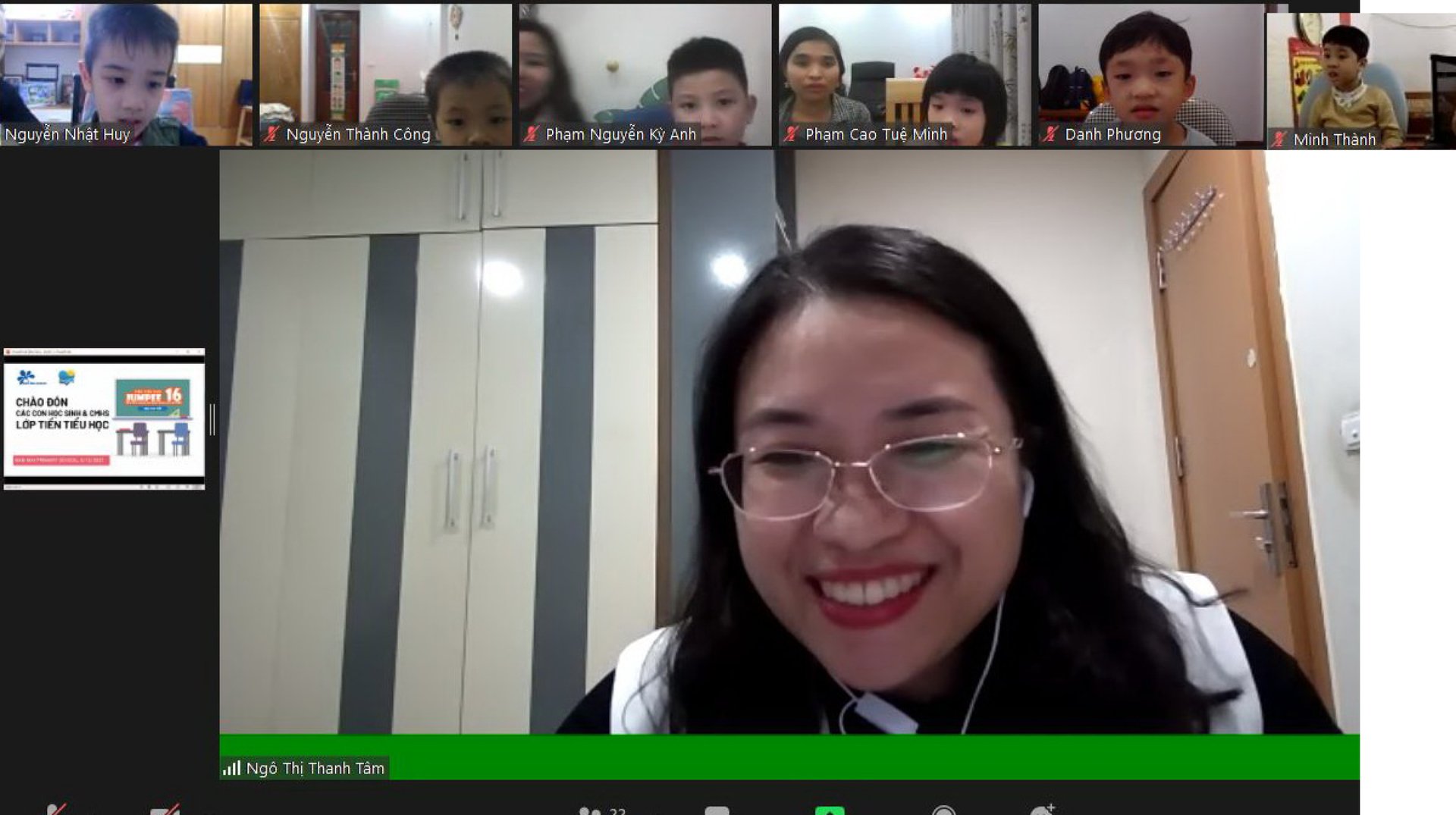 Về tiết Tiếng Anh, đến buổi thứ 2, tiết Tiếng Anh của cô Emma được đưa lên đầu, giúp con hứng thú hơn nhiều. Cô Emma tương tác và khích lệ các con rất tốt. Cô cũng quản lý phần micro của các con  tốt nên lớp học nề nếp hơn.”