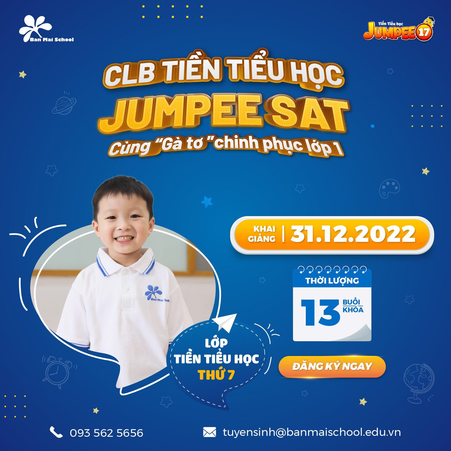 CLB Tiền tiểu học Jumpee Sat 2023 – cùng “gà tơ” chinh phục lớp 1 – dành cho trẻ sinh năm 2017.