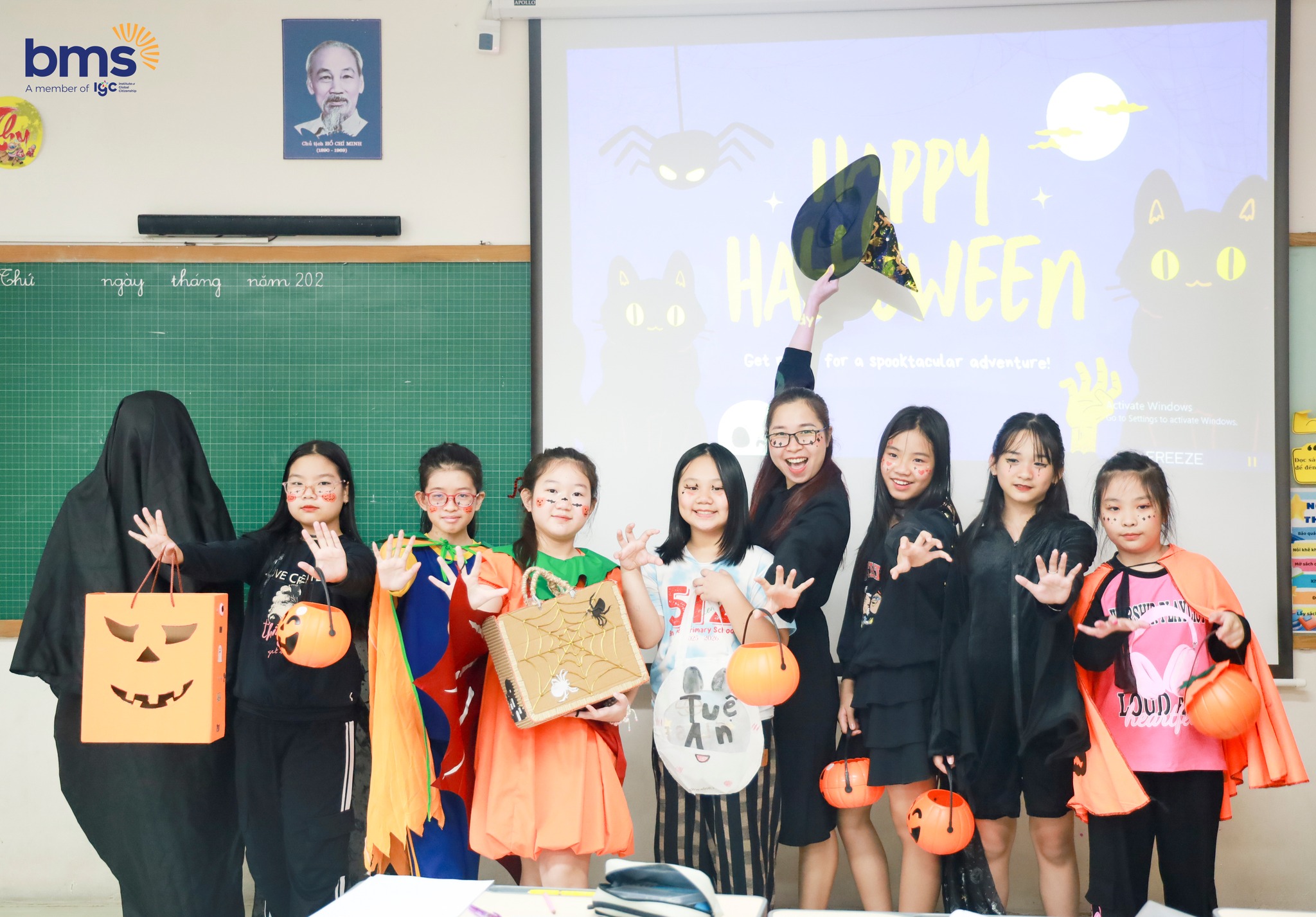 Điểm thú vị của Halloween năm nay chính là cách Trường Tiểu học Ban Mai kết hợp hoạt động trải nghiệm với học tập. Trong tiết tiếng Anh, các con được tìm hiểu về lịch sử, ý nghĩa và những biểu tượng quen thuộc của Halloween thông qua các trò chơi tương tác và hoạt động kể chuyện đầy sống động.