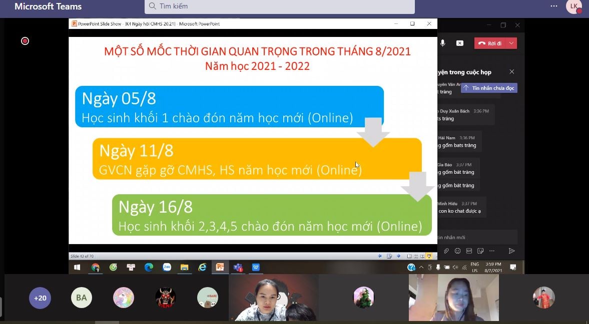 Thật nhiều cảm xúc khi cả hàng nghìn cô trò cùng các bậc phụ huynh được gặp lại, nhìn thấy nhau trong buổi chiều 7/8 – dẫu chỉ là qua không gian mạng, cùng tổng kết năm học 2020 – 2021- năm học của những chiến binh.