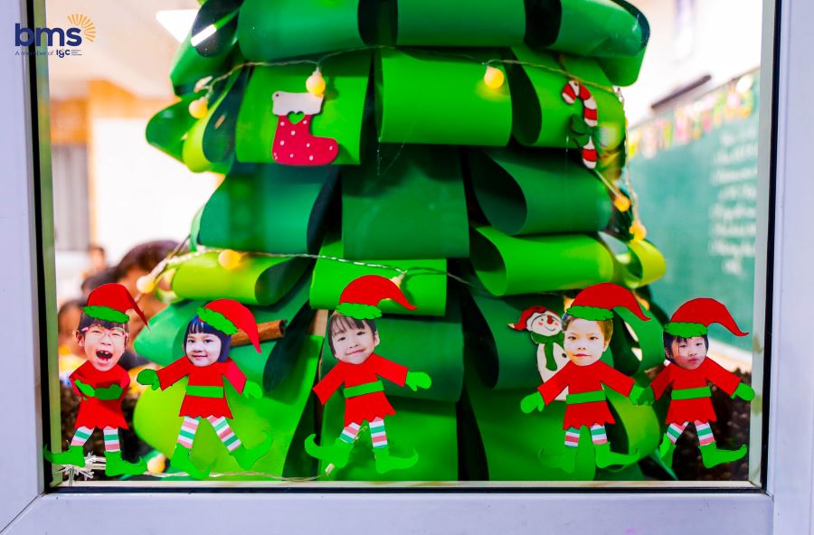 BMSers và thầy cô đã cùng nhau sáng tạo nên những khung cửa sổ đặc biệt, mang hơi thở của mùa lễ hội đến từng lớp học. Mỗi khung cửa là một câu chuyện – là những chú tuần lộc đáng yêu, ông già Noel vui nhộn, cây thông lấp lánh, những bông tuyết nhẹ nhàng... Đặc biệt, hưởng ứng chủ đề năm học "Green Actions - Bright Future", BMSers đã tận dụng các vật liệu tái chế thân thiện với môi trường để sáng tạo, lan tỏa thông điệp sống xanh, bảo vệ Trái Đất.